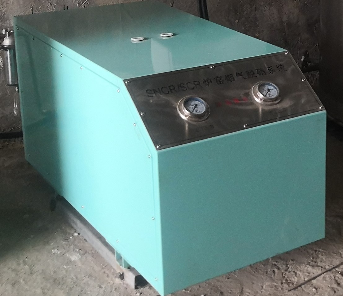 脫硝用還原劑(尿素溶液/氨水)及稀釋用軟化水通過本模塊加壓供給“稀釋計量分配模塊”,泵站模塊可根據整套系統的實際運行情況調整管路壓力,使整套系統管路始終保持恒定的壓力。泵站配備加壓泵兩臺(一用一備)、背壓控制閥、過濾器、電磁閥及壓力顯示裝置等成套設備(加壓泵選用格蘭富、南風泵業等一線品牌),并可配備遠程監控及操作系統,一套泵站模塊可供多臺爐窯脫硝使用。該模塊具有外形簡潔美觀,管路聯接口分布合理,安裝快捷方便等優點??筛鶕蛻粢蠹皩嶋H需要配備立式或臥式泵站模塊。